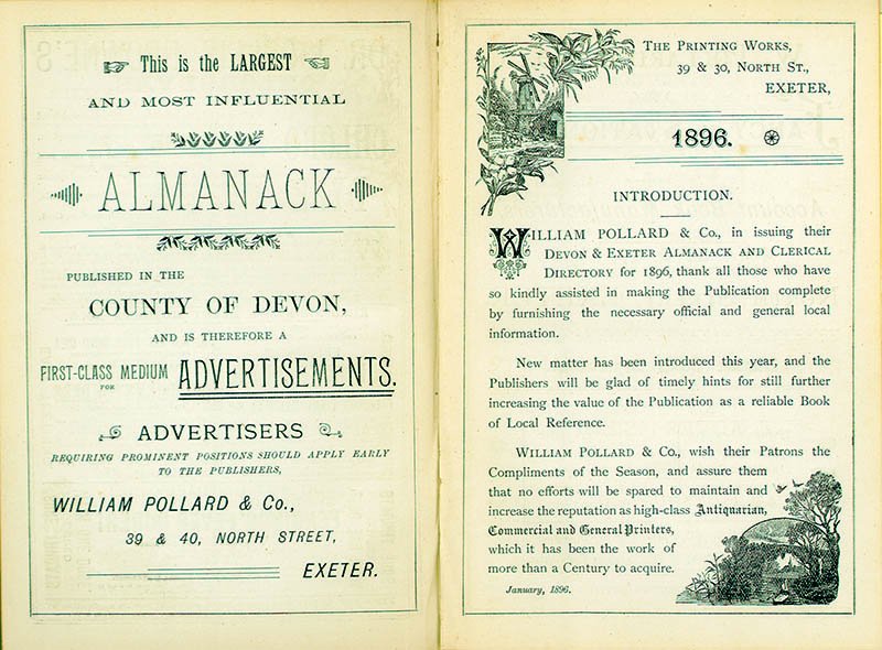 In 1885, with his wife, Marianne, having previously died in childbirth, William Pollard died suddenly leaving seven young children. There was no male family member to lead the business – as was the expectation of the time. The women of the family, particularly Emma (William’s sister), rallied round to both care for the children and appoint managers for the business. They succeeded on both counts. Five of the children remained engaged in the company right up to the 1950s. The Exeter Almanac for 1892 declared that: ‘Wm Pollard & Co., owing to the demand for space necessitated by their increasing business have, during the past year, re-built and greatly extended their premises. This improvement has enabled them to add new machinery of the latest type to their already extensive plant.’ A particular, if temporary, success of those years was development as an Educational Publisher – based on appointment to supply National Society schools with workbooks, textbooks, stationery, etc. These were expanding rapidly as legislation provided for universal ‘elementary education’. At this time, the business advertised itself as: ‘Printers, Stationers, Account Book Manufacturers and Educational Booksellers’.