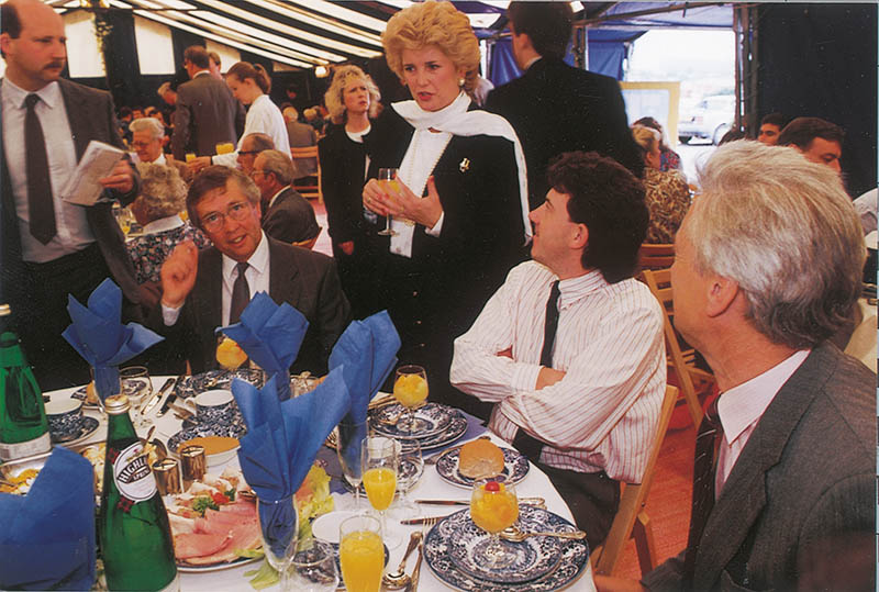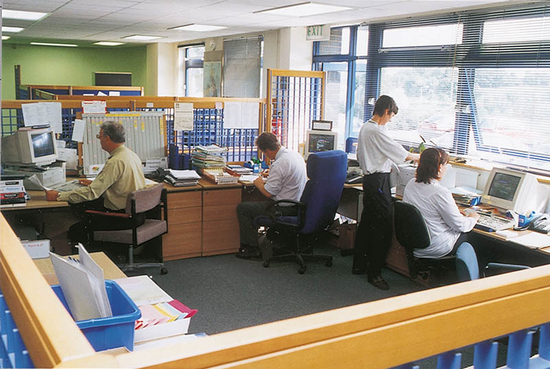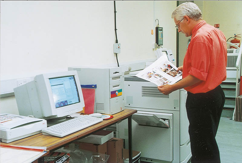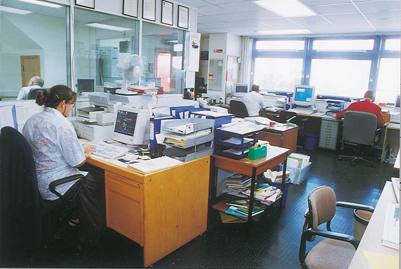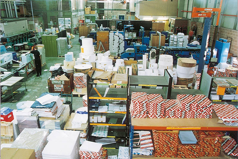 With its expanded activity, Pollards became cramped for space in central Exeter and the old site in Southernhay was eventually sold. This enabled a more modern factory to be built, with exceptional transport links by road, rail and air. The official opening of ‘Oak House’ at Sowton was held in June 1991. Brenda Dean, then General Secretary of a leading print trade union, officiated. She affirmed the excellent relationships between employees and management to which Pollards is committed. The range of typical activities at Oak House was recorded in 1999.