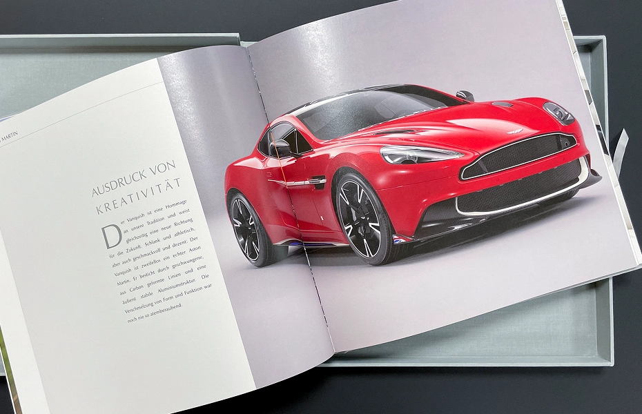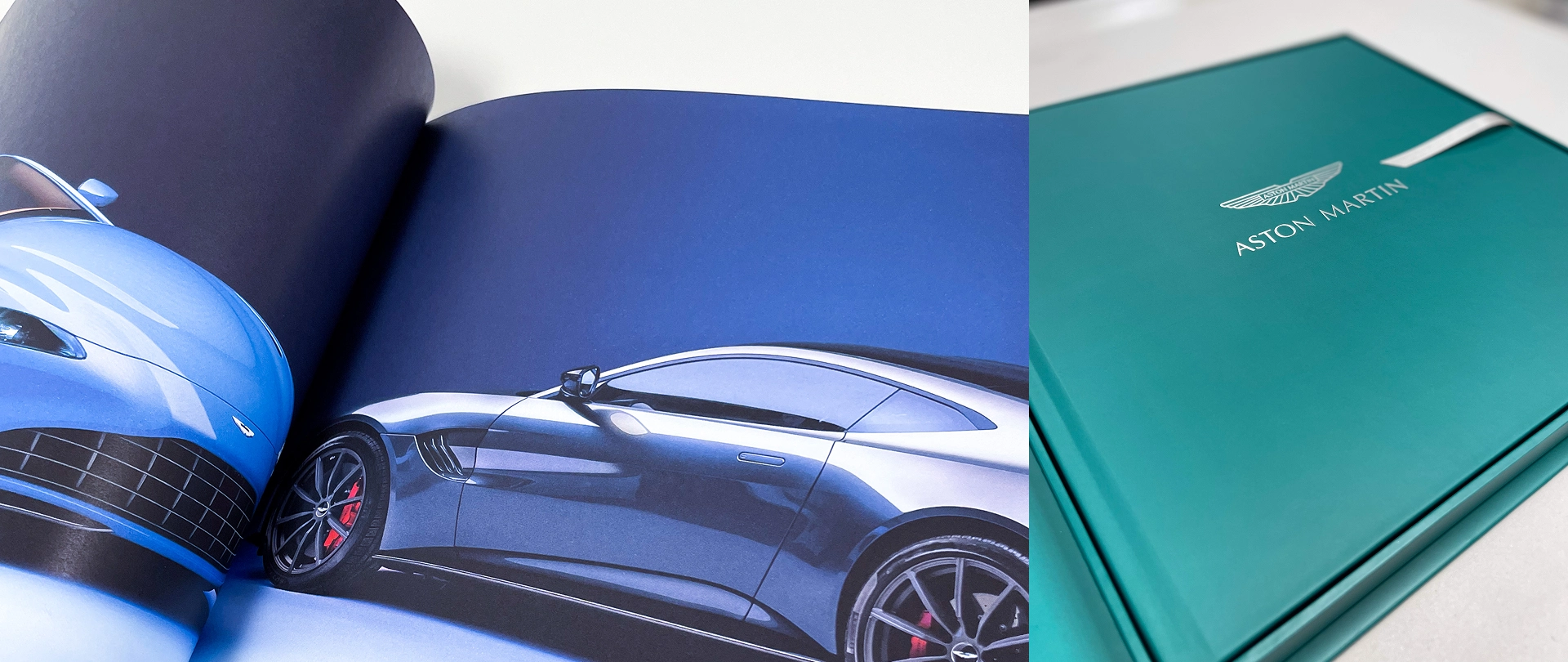 We produce bespoke build books showcasing each car’s production journey with step-by-step imagery and a birth certificate for when each car was produced. Our system brandhub360 allows the user to upload the images of the vehicle, which then will automatically generate the print files, the books are digitally printed using HP technology, foiled and thread sewn.